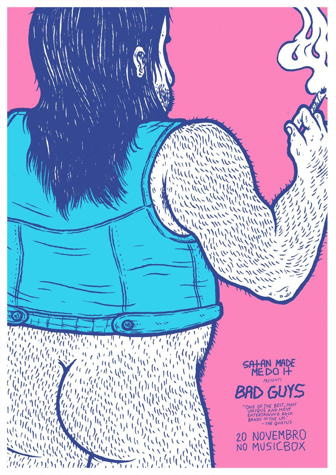 SATAN MADE ME DO IT’s upcoming live event in MusicBox, Lisbon, with our guests Bad Guys, is quickly approaching. We’re fucking psyched. It has all the ingredients that a killer show needs. Take the official poster for instance: is that punk or is that punk? What, is pink and baby blue too much for you to handle? That’s the beautiful part. RUDOLFO took those colors and turned them on their heads to make all the assholes runaway. True fans will get it of course. And those are the ones we care about.